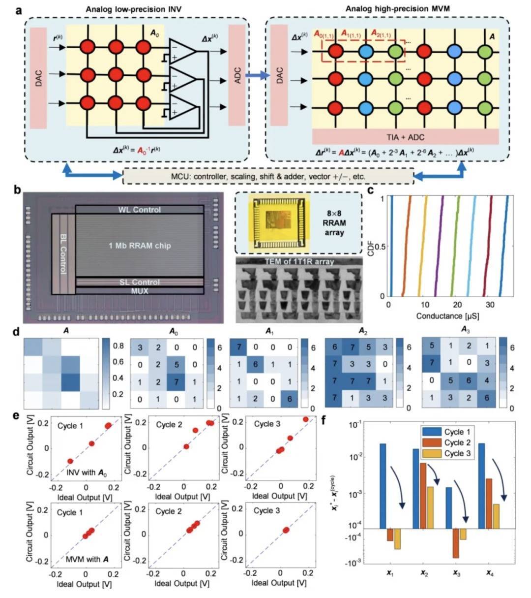 近日,北京大学人工智能研究院孙仲研究员团队联合集成电路学院研究团队,成功研制出基于阻变存储器的高精度、可扩展模拟矩阵计算芯片配资炒股真专业,首次实现了在精度上可与数字计算媲美的模拟计算系统。